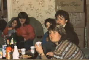 J’ai une photo que ma mère a gardé (ma mère devant à droite tenant le verre et Christelle probablement juste derrière elle à droite également)